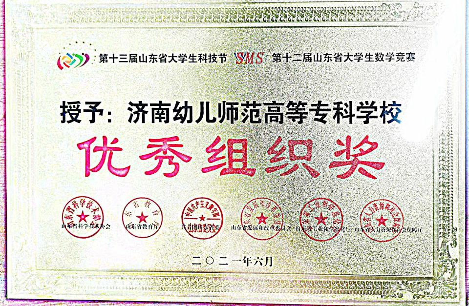 第十二届山东省大学生数学竞赛(专科组)于6月5日上午在烟台举行。初等教育学院数学教育专业24名同学参赛,陈冠军、王鑫礼、张悦、郝良栋、李香倩、王涵6名同学获得一等奖,其余同学获二等奖。大赛前数学教研室杨缙、梁静、于文艳三位老师对参赛选手进行了精心辅导,帮助同学们学习新知识,解疑答惑。有付出就会有收获,最终在梁静、隋桂霞老师带领下,师生共同努力再创佳绩,为我校赢得大赛“优秀组织奖”。