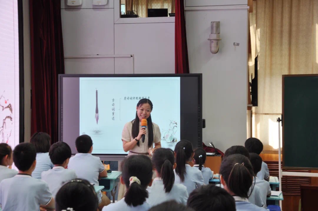 活动伊始,林志芳老师执教《卜算子·送鲍浩然之浙东》和《金字塔》两节观摩课。林老师独特的文本解读与别出心裁的教学设计,带领学生走进王观送别鲍浩然时的美景与心境,通过想象画面、多种形式朗读,学生领悟送别时的深情祝愿,环环相扣,入情入境。学生尝试运用古诗词重述的方式,创作现代诗《你在浙东的春天里》,学生诗兴大发,场下赞声不断。