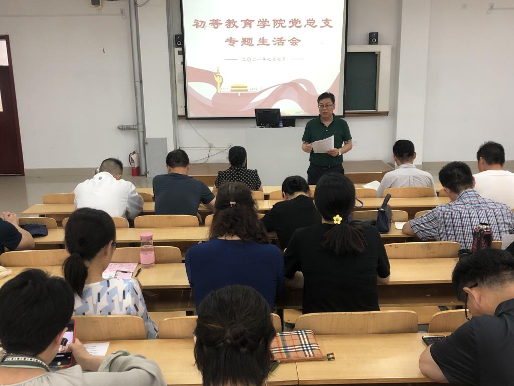 7月7日中午,初等教育学院在初等楼阶梯教室五召开了党史学习教育专题组织生活会,会议由院党总支副书记孔建主持,全体党员参加会议。