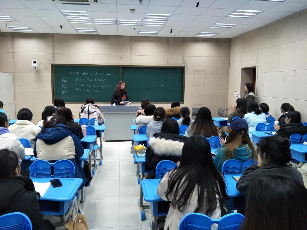 11月8日,英语教育教研室朱莹老师执教公开课,张玉敏、李岩楠、刘川川和牟程程四位老师听课。