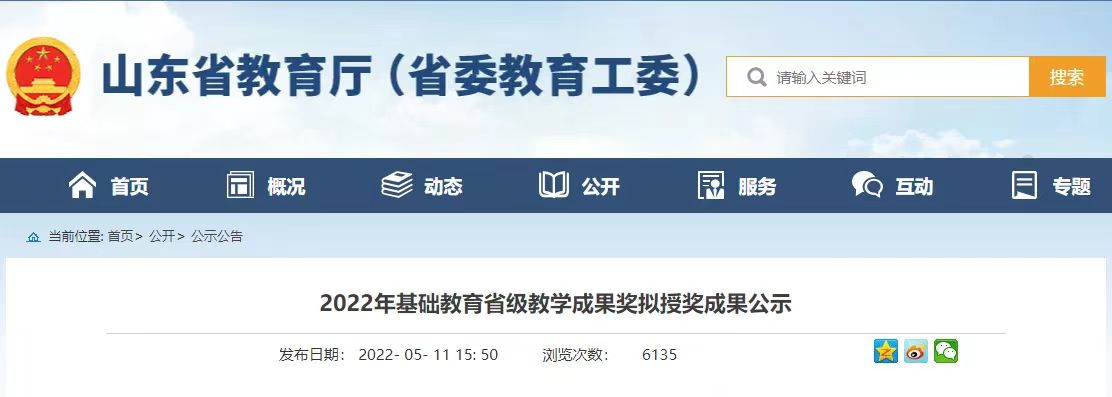 近日,由山东省教育厅举办的2022年省级基础教育成果奖的获奖情况予以公示,经单位推荐,专家评审共评出特等奖40项、一等奖119项、二等奖244项。