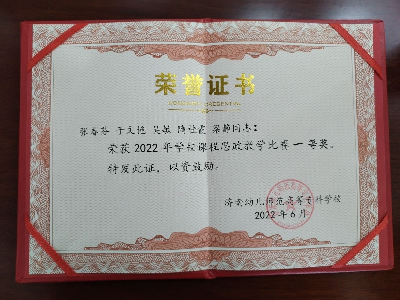 2022年6月1日,初等教育学院数学教研室“高等数学”教学团队张春芬、于文艳、吴敏、隋桂霞、梁静五位老师参加我校“2022年课程思政研课会”并获得课程思政教学比赛一等奖。