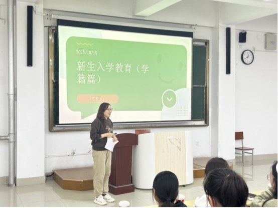 为帮助2025级新生明确学业要求与发展方向,10月15日下午,我院根据教学处要求及本院工作安排,组织开展了新生入学教育活动。活动由栗娇、石莉、韩笑、王梦杰四位老师主讲。