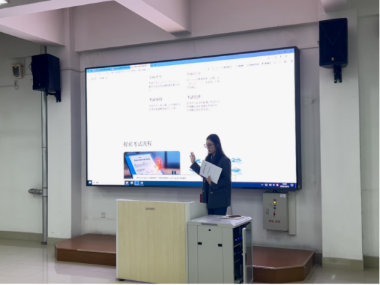 栗娇老师系统讲解了学籍管理核心事项,涵盖入学注册、学制年限、成绩考核、学业警示及休复学等流程。石莉老师介绍了学生评教流程、学业预警机制,并说明了大学英语四六级、期末考试安排及教务处公章使用规范。韩笑老师重点强调了考试纪律,详细解读违纪认定与处理办法,引导学生树立诚信考试意识。王梦杰老师则围绕普通话考试,为新生梳理备考信息。