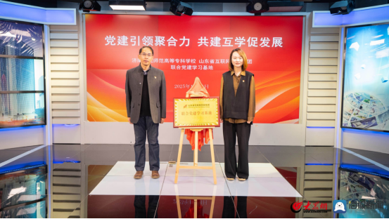 参观活动结束后,举行了“济南幼儿师范高等专科学校——山东省互联网传媒集团联合党建学习基地”揭牌仪式。成刚书记与山东省互联网传媒集团总经理助理、大众网•海报新闻副总经理吴毅斐共同为基地揭牌。该基地的成立,将为双方后续在党建领域的深度合作搭建起稳固的平台。