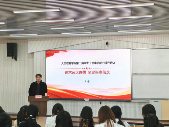 为进一步强化学生干部的思想政治引领,筑牢责任担当意识,提升履职能力与综合素养,充分发挥学生干部在学院建设与同学成长中的先锋模范作用,我院“培英计划”第一课正式拉开帷幕。11月11日,学院党总支书记王蕾现场讲授,25级全体学生干部齐聚一堂,共赴这场关于理想与信念的青春盛会。