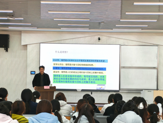 课堂伊始,王蕾以“什么是理想”这一深刻命题引发全体学生干部的思考。他结合多个感人至深的新闻故事,用鲜活的案例诠释理想的真谛,让大家对“初心与使命”有了更直观的感悟。“我们还年轻,我们有失败的资格,有从头再来的机会。”王蕾的话语温暖而有力量,使同学们明白了不必畏惧一时的困难与挫折,要敢于树立远大理想、明确人生目标。