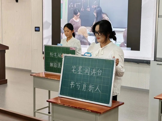 三笔字展示环节,从三笔字内容、辅导员教案、日常授课等方面讲述,在书写展示中,辅导员们聚焦“学”字,一笔一划、一撇一捺写尽显学子对汉字文化的敬畏与传承。