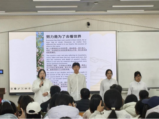 英语口语辅导员以纯正的发音、流利的表达,生动地向我们展示了“努力是为了看世界”,将专业思考与语言表达完美融合。