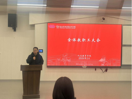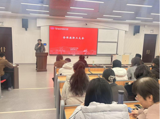 为科学谋划2026年学院发展蓝图,进一步统一思想、凝聚共识,3月8日,我院在明信楼阶梯五教室召开全体教职工大会。会议由副院长赵晶主持,全体教职工参加。本次会议在回顾2025年工作成效的基础上,深入分析当前形势与挑战,全面部署2026年重点任务,为新学期各项工作开好局、起好步奠定了坚实基础。