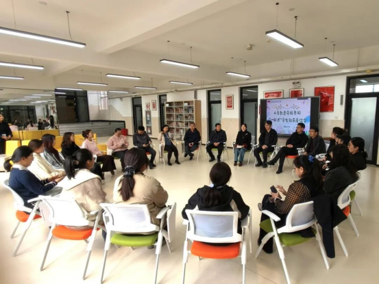 在励新书院二楼连廊,师生召开现场座谈会,围绕专业学习、学业发展、课程建设等问题深入交流,专业负责人与教研室主任逐一答疑解惑、精准指导。