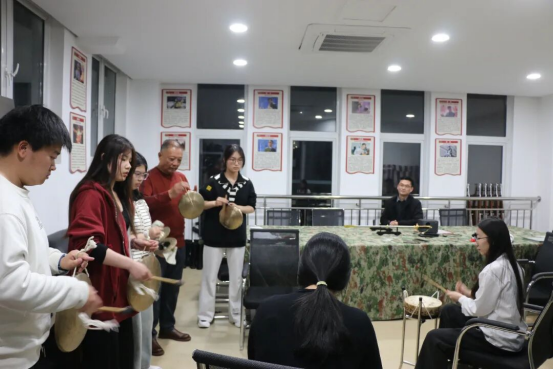 现场,张文明观看了分团演员的排练,对乐队同学的进步表示肯定并进行鼓励,同时与编写组同学进行了研讨交流,围绕新剧本创作提出了建设性修改意见,为团队创编作品提质赋能。