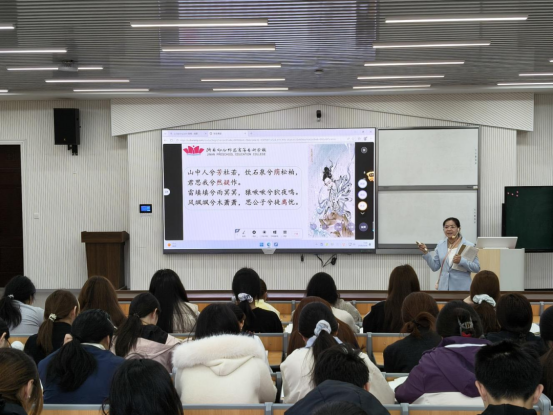 会议伊始,杨成琰老师带来了一堂精彩纷呈的《大学语文》示范课,授课对象为研学专业学生。杨老师紧扣研学专业特色,将古典文学赏析与专业素养培育有机融合,以细腻的文本解读、生动的意境渲染、丰富的教学互动,带领学生深入感受浪漫瑰丽的作品魅力与深厚的传统文化底蕴。本次示范课亮点突出,杨老师将AI技术赋能教学与研学专业特色有机融合,充分展现了数字化背景下通识课程教学改革的创新路径,实现通识教育与专业教育的双向赋能。