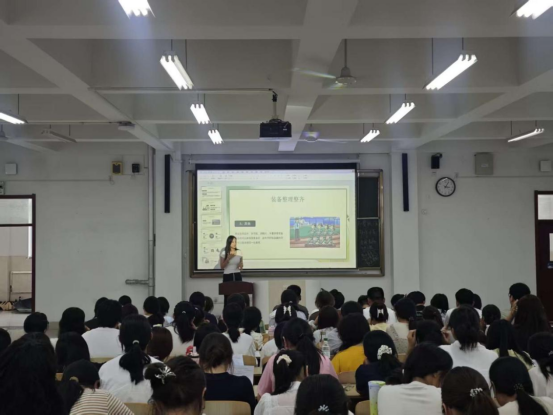 夏恩佑老师以“细节决定成败、为荣誉而战、团队精神、永不放弃、立即行动”五大核心素养为纲,引导新生拒绝“躺平”心态。她鼓励大家为个人与集体荣誉拼搏,在协作中发挥团队价值,以坚毅态度克服困难、高效落实行动。同时,她从行为规范、健康防护、后勤保障等维度明确军训准备要求,强调新生关注身体信号,做好基础防护与合理饮食、充分热身等工作,并鼓励新生在军训中发现榜样、缔结友谊,以全身心状态投入训练。