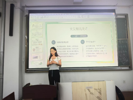程焕萍老师针对部分新生可能存在的“怕累、畏难”情绪进行引导,强调军训是青春成长的重要环节,也是青春独有的成长印记。她鼓励新生主动克服畏难心理,在集体生活中收获友谊、拓宽交流圈,亲身感受军训对个人意志的磨练与集体意识的强化。在安全保障方面,程老师围绕军训场景给出多维度细致指引,强调始终要以“健康安全优先”为核心原则,从细节处落实防护措施,为新生安全、顺利参与军训消除后顾之忧,筑牢坚实防护屏障。