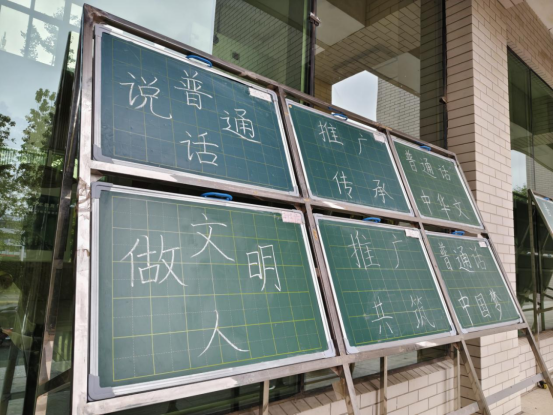 与此同时,一场别开生面的“普通话宣传标语书写活动”也吸引了广大同学的积极参与。同学们围绕推广普通话宣传标语,精心构思、认真创作,用规范的汉字和优美的书写诠释了对普通话的热爱。一幅幅作品或端庄俊秀,或活泼灵动,不仅展示了同学们扎实的书写基本功,更表达了他们对推广国家通用语言文字的积极态度和坚定决心。