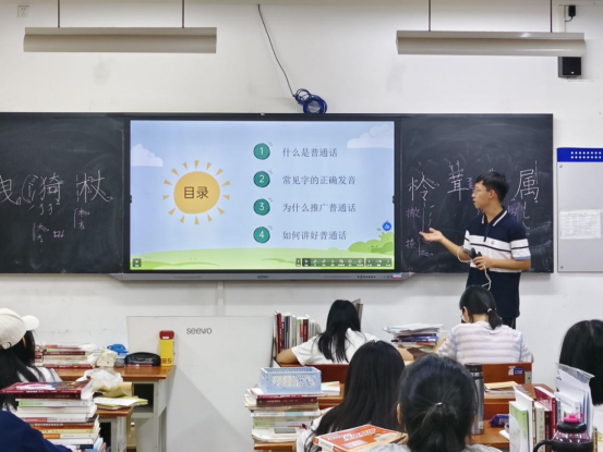 为深入贯彻教育部《关于加强新时代语言文字工作的意见》,切实发挥师范院校在语言文字工作中的示范引领作用,大力提升师范生语言素养与教学能力,营造规范使用国家通用语言文字的校园文化氛围,在第28届全国推广普通话周来临之际,我院成功组织开展了形式多样、内容丰富的推普周系列活动。通过普通话特色辅导课、宣传标语书写等实践性强、参与度高的方式,营造了良好的语言文字氛围,有效提升了师生们的普通话应用能力与文化素养。