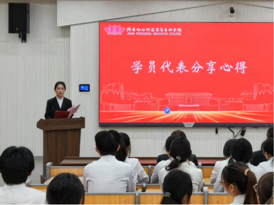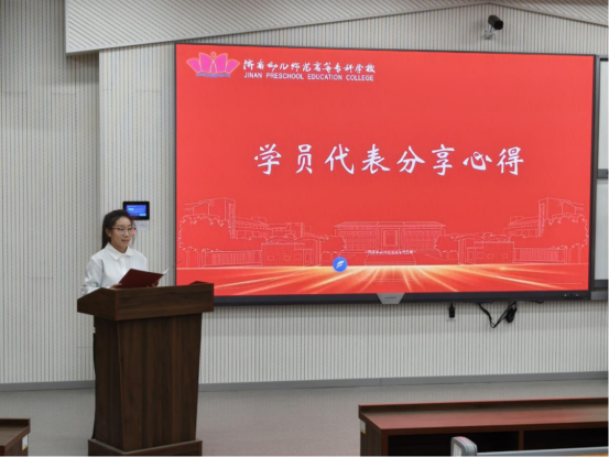随后,学员代表、25级小学教育班团支书宋明月分享了培训心得。她表示,从领导老师的专题讲座,到学长学姐的经验分享,再到涵盖AI管理、公文写作、沟通协作、压力应对等一系列务实课程,使其从职责认知到实践方法均获得系统赋能。她将以此次培训为新的起点,让学习成果转化为工作实效,努力在实践中为同学提供更专业、高效、有温度的服务。