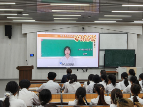 活动伊始,主持人张静怡宣布仪式正式开始。现场首先播放了本届培训的回顾视频,视频集中展示了培训期间的精彩场景与学习瞬间。视频中,参训学生干部结合岗位实际,分享了在明确职责、服务同学、加强沟通、学以致用等方面的收获与成长。一个个画面既是对培训成果的集中呈现,也展现了学生骨干队伍在思想与能力上的显著进步。