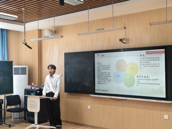 会上,各学生组织负责人依次汇报工作,既总结成效,也查摆问题并明确改进方向。自律会会长张晨旭率先汇报,部门已完成多次宿舍、卫生、纪律检查及主题活动,同时指出当前存在成员责任意识不足、接班人员待确定等问题,明确1月将加快人员选拔、强化成员责任意识;团总支宣传委员周帆围绕多项活动跟进与团务工作开展情况进行汇报,提出工作中暴露出流程秩序不规范、跨部门沟通效率低等短板,计划通过优化工作流程、加强部门协作加以解决;学生会主席郝思盈聚焦冬至晚会等系列活动开展情况进行汇报,查摆了组织内成员能力参差不齐、工作主动性不足等问题,明确1月将重点推进活动加分统计、时长审核工作,并同步开展成员能力培养。