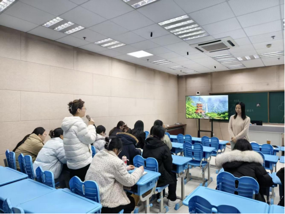 林志芳、孟宪珍两位老师开展语文教学技能专题指导。活动先由两名学生进行阅读课例展示,两位老师针对备课亮点与问题进行精准点评。随后,林志芳进行写作教学示范课,清晰梳理写作教学的实践思路。整场指导以示范引领、点评提升的方式,帮助实习生夯实教学基本功,增强实习教学信心。