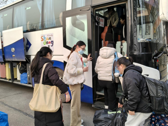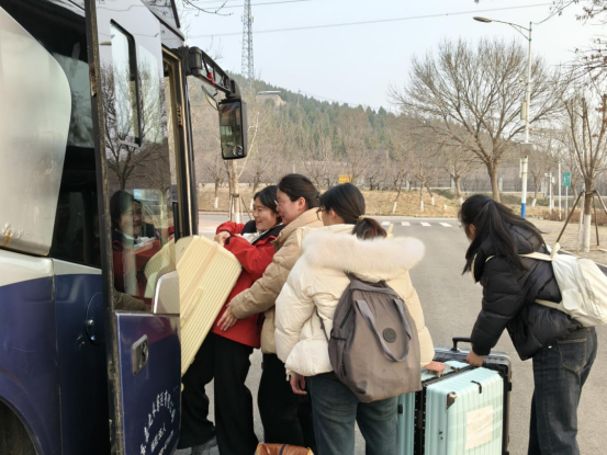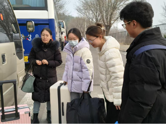 在老师们的协助下,实习生们有序整理行李、排队登车,在温暖的送别与期许中,踏上了奔赴教育实习岗位的旅程。