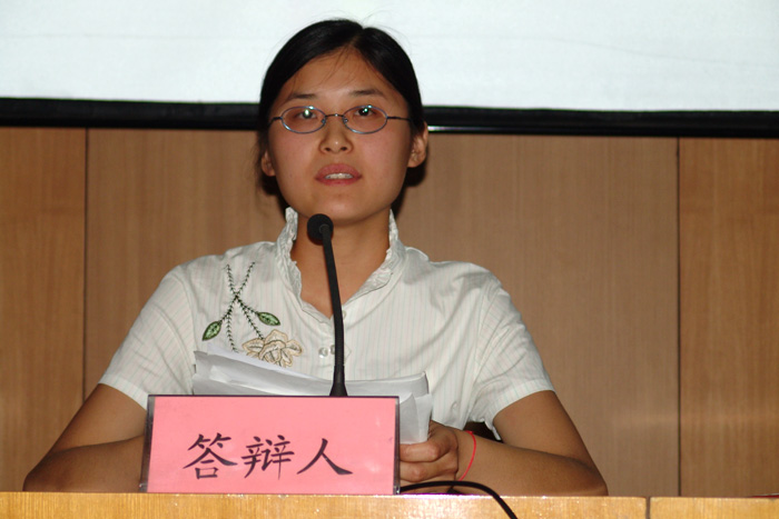 本届答辩会分“陈述”和“问答”两个程序,每位答辩人首先在规定的时间内简述自己论文的内容要点,然后由评委会老师随机提出问题,答辩人在经过短时间的思考后必须对所提问题进行解释和阐述,最后由评委按照规定的标准评定论文成绩。这次论文答辩内容既有对小学课堂教学实践的归纳,又有对基础教育新课程理念的剖析;既有对古典诗词的深层探幽,又有对社会现实问题的评价解读;既有对儿童艺术形式的理论探索,又有对小学双语教学的思考分析等等,涉及面较广。经过近两个小时紧张而又激烈的论文答辩,评委们对答辩的毕业生给予了较高的评价,认为这些论文观点正确、论据有力、论证充分、资料翔实、理论分析深入而且能密切联系实际,体现出了毕业生优秀的素质。
