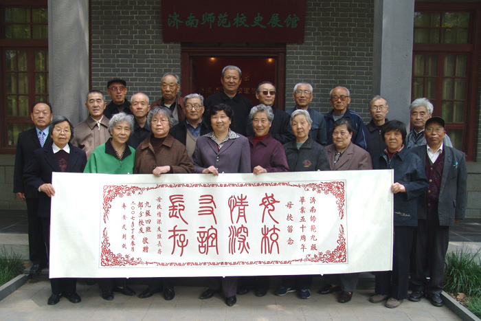 近日,我校1957年毕业的九级四班和三班校友先后回校举行毕业50周年联谊活动。古稀之年,白首相聚,抚今追昔,感慨万千,老校友们无不为母校的今天而自豪,同时也表达了一个共同的心愿,祝愿母校的明天更美好。九级四班校友向母校赠送了巨幅剪纸——“母校情深 友谊长存”。九级三班校友集体赋诗一首,表达对母校的情感和祝愿: