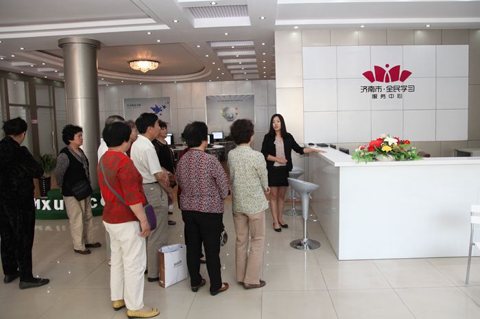 红星艺术团团长孙世奎、书记汉奉迎带领艺术团成员在韦娜老师的带领下,参观了全民学习中心的休闲读吧、移动学习区、网络学习区、体感运动室、展示区等。夏伯慷老师给大家培训了泉学网的使用方法,大家学习热情高涨,认真做着笔记,很快便掌握了学习资源的学习方法和学习社区的交流方法。最后,在讨论室,大家一起交流看法,探讨想法,对全民学习资源建设赞不绝口。孙团长表示将与全民学习服务中心加强各方面的交流与合作。