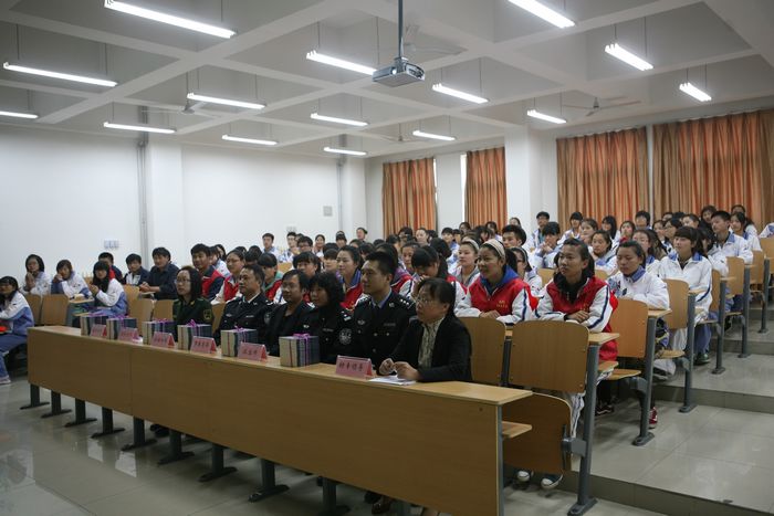 10月24日下午,我校“平安校园、和谐发展”大学生志愿服务活动启动仪式在阶梯教室隆重举行,标志着“治安志愿者”全面参与学校安全教育和管理的序幕已经拉开。长清公安分局政委、大学路派出所教导员、长清消防大队上尉、市教育局安全处长、我校有关领导参加了启动仪式。