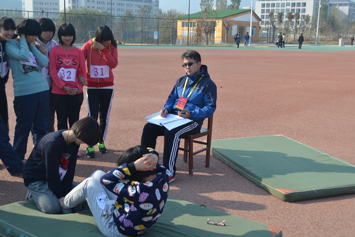 抽测小组依据《国家学生体质健康标准》抽测了2014级初起专初等教育专业和学前教育专业70名学生的身高、体重、肺活量、立定跳远、800m/1000m、50m、坐位体前屈、引体向上/仰卧起坐等8个项目。同学们井然有序地顺利完成了所有测试项目。抽测小组充分肯定了我校体育工作取得的成效。