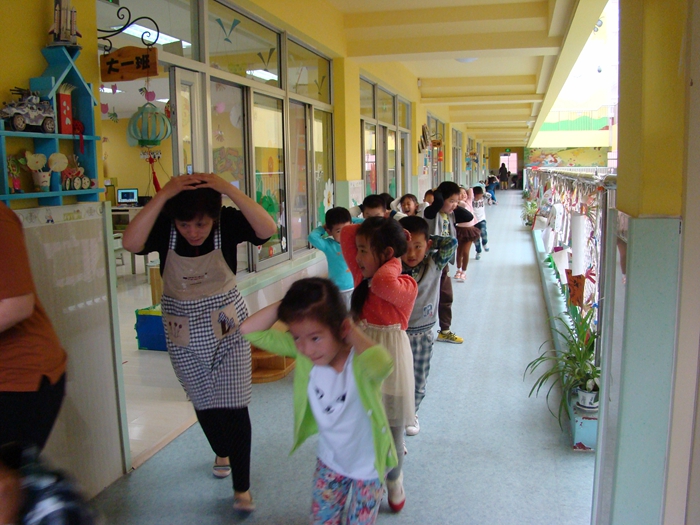 下午15时随着三声短促的地震报警铃声响起,防震避险演练正式开始。各班教师迅速指挥本班幼儿按平时防震避险的自我保护方法就近抱头、曲身躲在桌下或墙角。待疏散警报响起,各楼梯口负责人也已快速到位,幼儿在老师带领下有秩序从教室依次按照预定的疏散路线,迅速撤离到安全地点。整个防震避险演练共用时3分钟,全园301名师生保持镇定,没有出现惊慌与骚乱,迅速完成全员安全撤离。