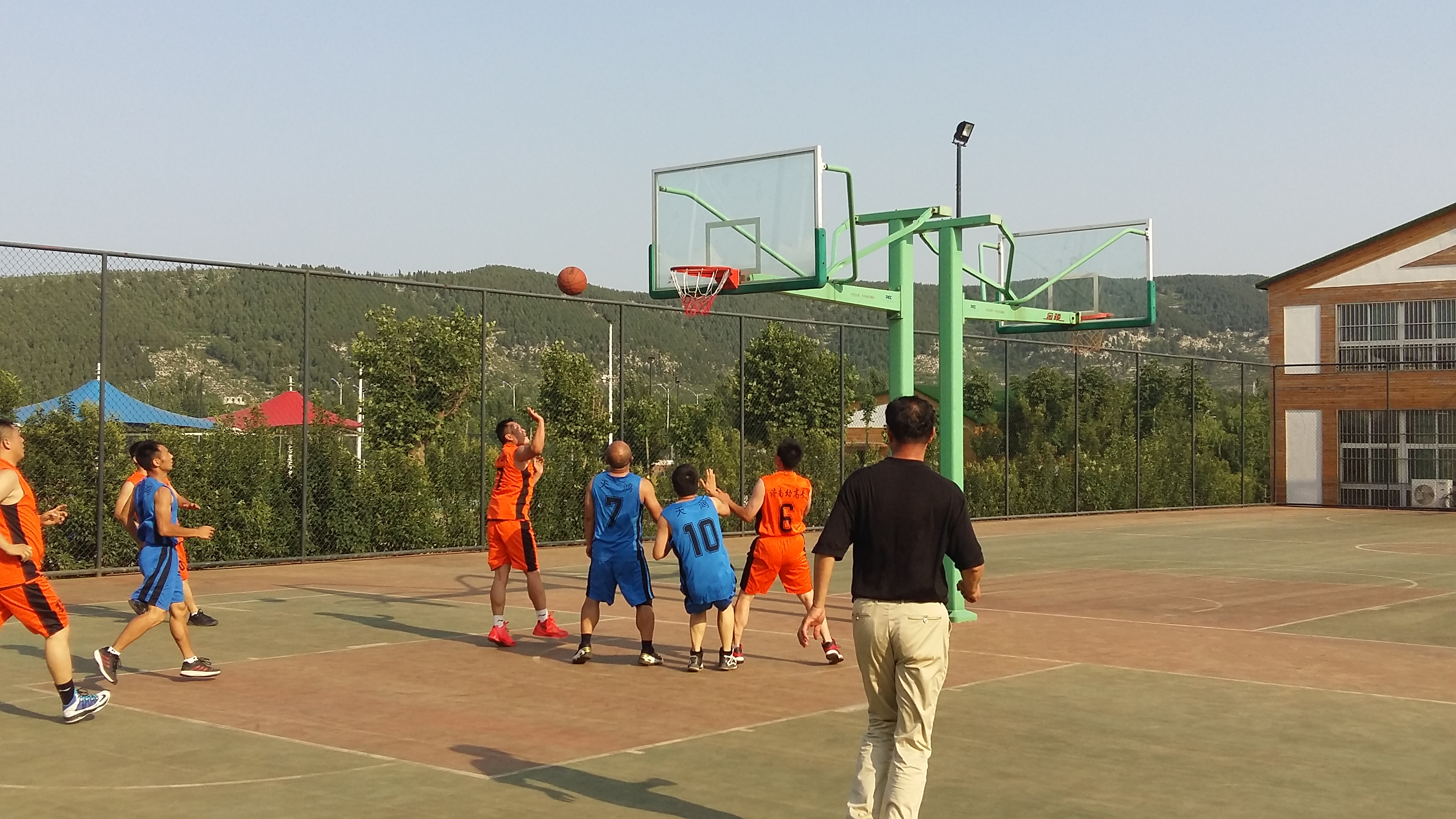 为庆祝党的生日,密切与驻地各政府机关、企事业单位关系,活跃校园文体生活,6月30日至7月3日,我校工会和长清区政府体卫处成功联合举办了济南幼高专“迎七一”篮球友谊赛。