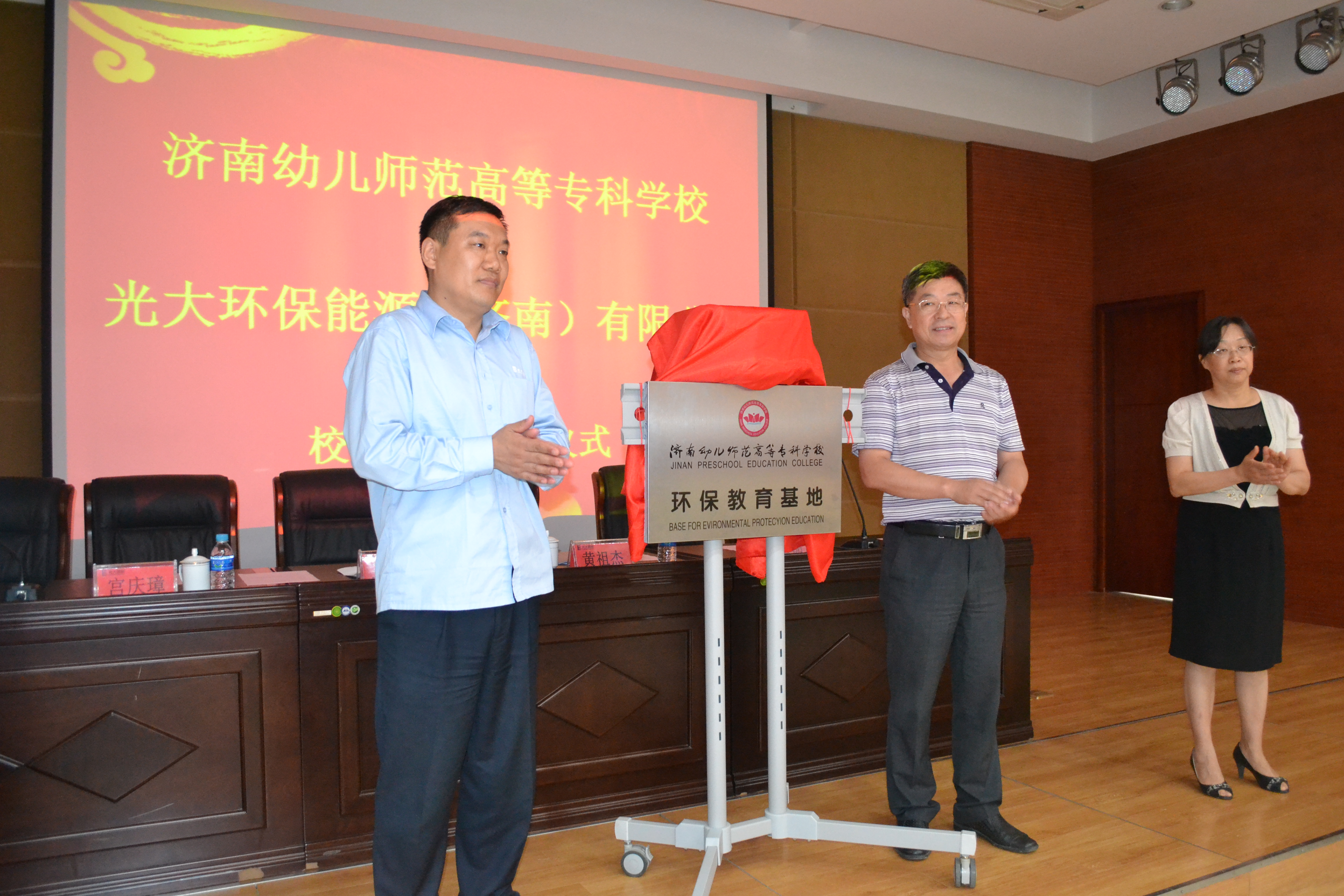 7月初,我校暑期“三下乡”社会实践活动校级团队的志愿者,赴光大环保能源(济南)有限公司开展环保实践活动,并举行了校企共建揭牌仪式。仪式上,黄校长与公司总经理签订了《环保教育基地及实践教学基地合作协议书》。