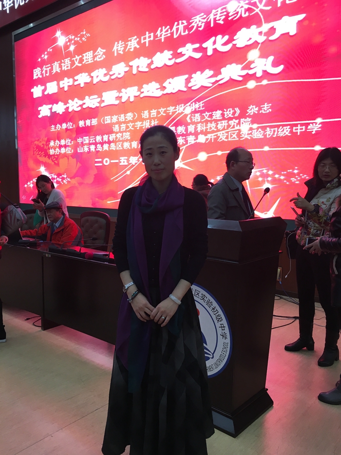 2015年12月12日至14日,由国家语委语言文字报刊社主办的首届中华优秀传统文化教育高峰论坛暨评选颁奖典礼活动在青岛顺利举办。教育部语文出版社、国家语委语言文字报刊社社长王旭明、教育部语言文字应用研究所所长张世平、中国教育报刊社副社长张新洲、山东省语言文字工作委员会办公室副调研员李志华、济宁市教育局副局长刘加庚等嘉宾出席了开幕仪式,中国云教育研究院院长肖洁介绍了首届中华优秀教育成果评选活动整体情况。初等教育学院于琮老师参加了此次论坛并作大会发言。
