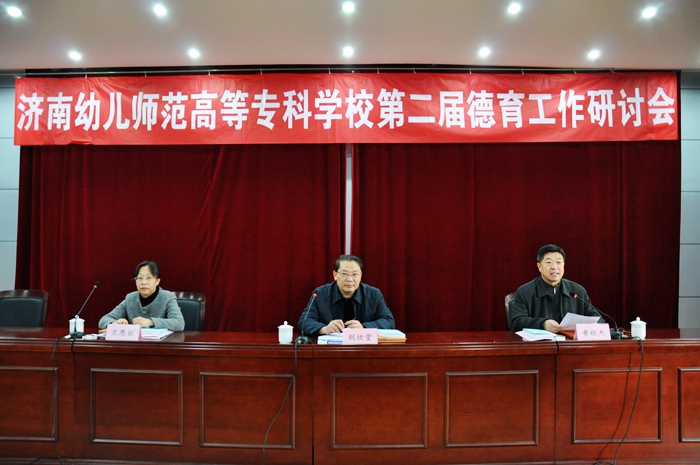为进一步深入学习贯彻落实党的十八届三中、四中、五中全会精神和习近平总书记系列重要讲话精神,坚持立德树人的根本任务,大力推进社会主义核心价值观建设,总结交流我校学生教育与管理工作主要经验做法,研究分析当前学生思想政治教育面临的新形势、新任务、新要求;进一步加强我校班主任辅导员队伍建设,提升理论水平和业务能力,不断提高学生教育与管理工作的针对性和实效性,提升我校学生思想政治教育工作的整体水平,1月9日,我校在明湖校区召开第二届德育工作研讨会,参加会议的有学校领导,中层以上干部,各学院副院长、副书记,全体班主任辅导员、思政教研室教师,学工处、团委工作人员。会议由学校校长、党委副书记黄祖杰主持。
