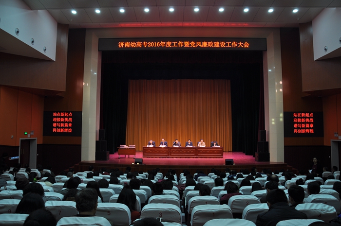 3月19日上午,我校在长清总校区艺术楼演播厅召开2016年度工作暨党风廉政建设工作会议,部署2016年工作任务。学校全体党员、助理以上干部、教研室主任、名师工作室核心成员、民主党派负责人参加了会议。会议由党委副书记吴士明主持。