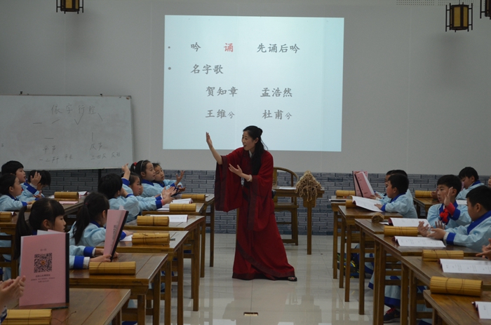4月17日,山东博物馆孔子学堂举办第一期“少年吟诵月”展演。我校初等教育学院于琮老师和虚静国学研究会的部分同学参加了本场演出。