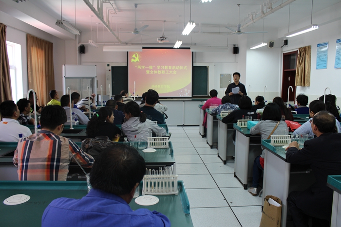 5月4日,基础教育学院在实验楼隆重召开“两学一做”学习教育启动仪式暨全体教职工大会,院长马洪秀主持会议。