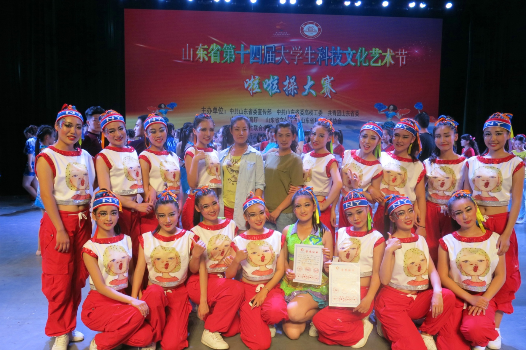 6月6日,由中共山东省委宣传部、山东省高校工委、共青团山东省委、山东省教育厅等单位联合主办的山东省第十四届大学生科技文化艺术节啦啦操大赛在临沂大学落下帷幕,来自全省的45支参赛队伍参加了比赛。我校啦啦操charming girl队技惊四座,参加的花球自选啦啦操和街舞自选啦啦操两个项目,均获得了一等奖第一名的好成绩。基础教育学院程玉双、蔡婷婷两位老师荣获“优秀教练员”称号。