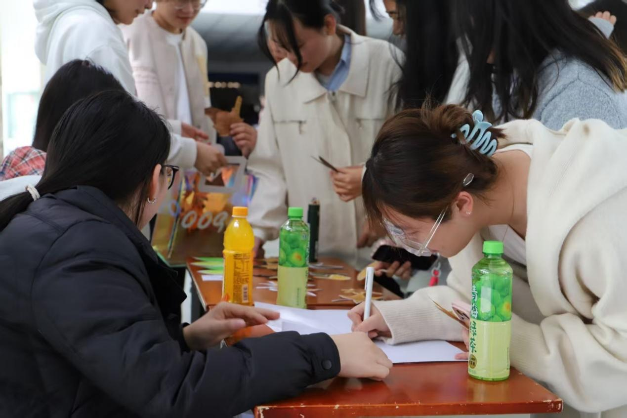 活动伊始,宣传外联部的工作人员便以热情饱满的姿态迎接同学们的到来,并详细介绍活动规则与流程。本次活动形式丰富有趣,极具吸引力。在寻叶的过程中,大家不仅能够欣赏校园的美景,还能借此机会深入了解落叶所属的树木种类、独特的生长习性以及完整的生长周期等知识,仿佛一场探索自然奥秘的奇妙之旅。寻找到落叶和物品的同学,满心欢喜地前往实验楼一楼大厅,换取数量有限的精美落叶卡片和书签,现场呈现出一派先到先得的热烈景象。