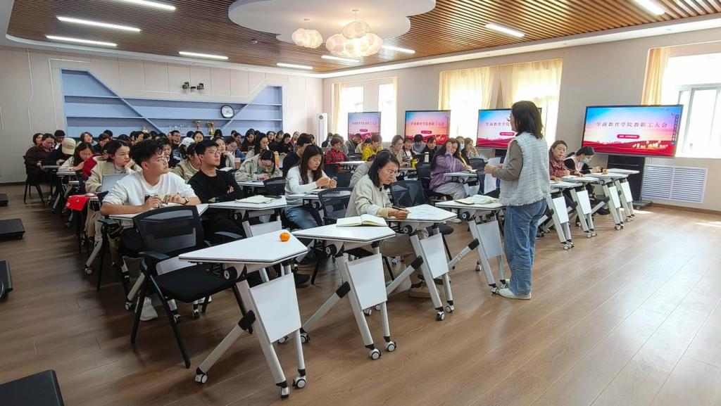 为夯实师范专业内涵建设,全面提升教师的教育教学水平,全力推动学前教育师范类专业正式认证工作高效开展,3月25日,学前教育学院于301智慧教室举行全体教职工大会。会议由学前教育学院党总支书记杨勇主持,学院院长刘小林、党总支副书记赵越、副院长肖虹及全体教职工共同参与。