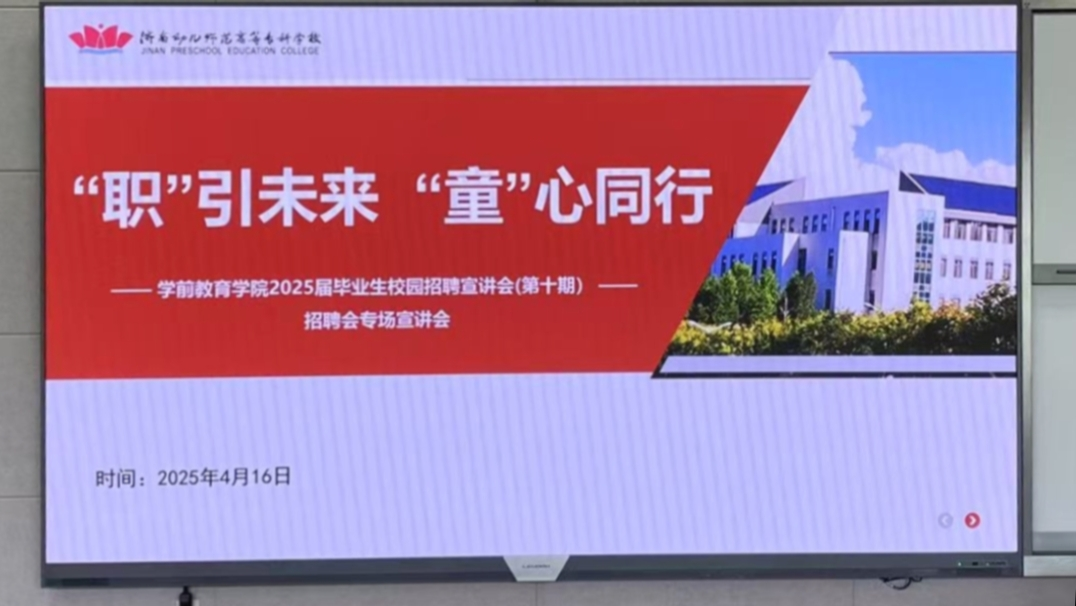 为切实做好2025届毕业生就业工作,积极推动用人单位和毕业生的精准对接,提供精细化就业服务,助力毕业生走稳就业之路。4月16日,学前教育学院分别邀请泰安幸福泉幼教教育机构、山东小马悦智教育科技有限公司在实训楼2102为毕业生带来了精彩的招聘宣讲。学前教育学院党总支书记杨勇、副书记赵越,辅导员刘路路、李燕、刘晓烨及部分在校生学生参与。
