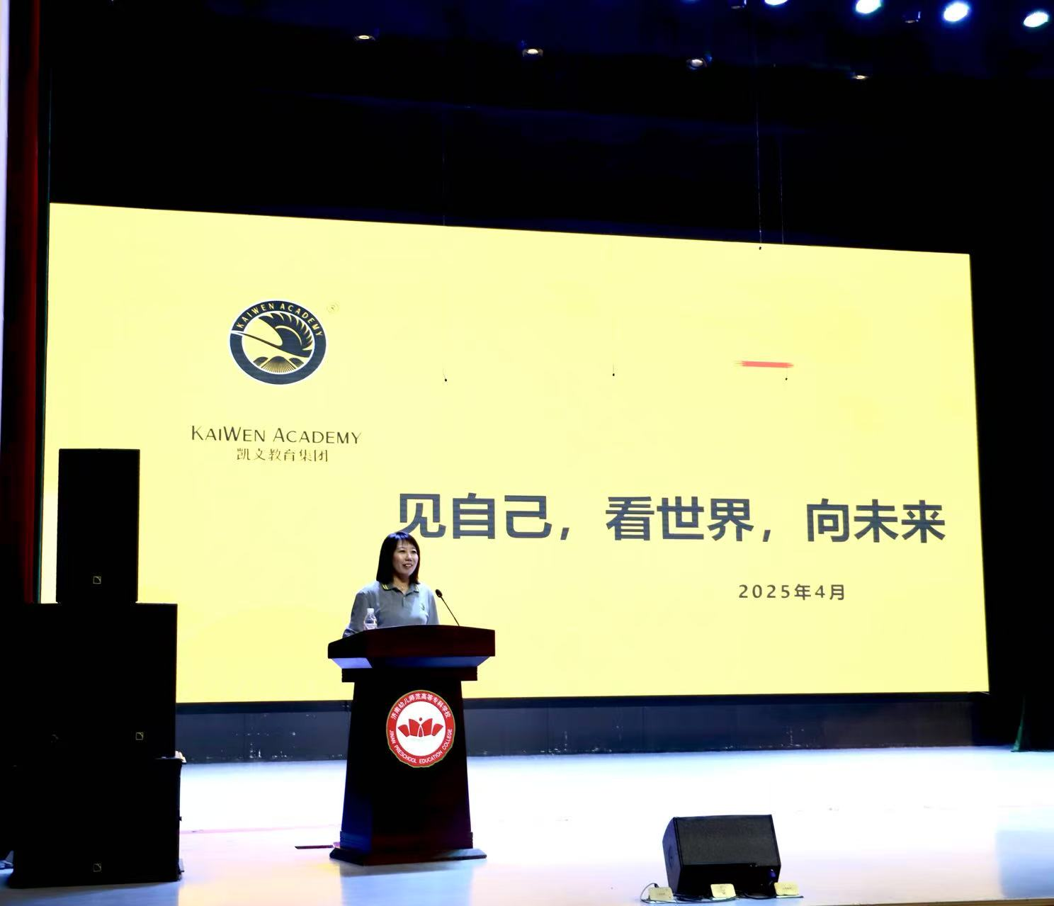 职业生涯规划讲座环节,由凯文教育集团人力资源高级经理王伟主讲。王伟老师以“见自己,看世界,向未来”为主题,从自我认知、职业探索、树立目标、求职准备等方面为学生们进行了深入浅出的讲解。她强调了兴趣、能力和职业素养在职业发展中的重要性,并分享了实用的测评工具和求职技巧,如霍兰德职业兴趣测评、STAR法则等,为学生们的职业规划提供了清晰的思路和方法。学生们认真聆听,积极参与互动,现场气氛热烈。