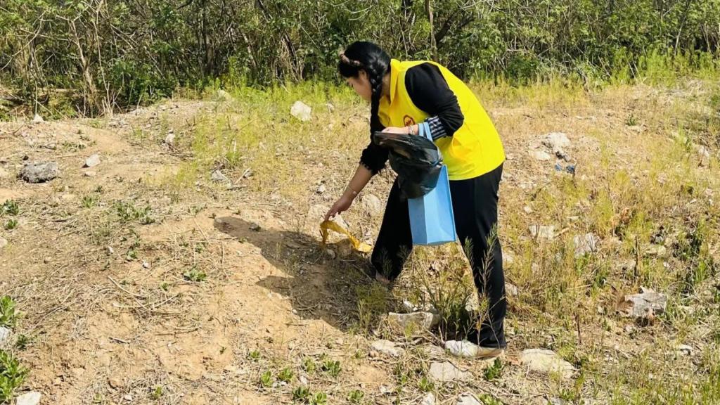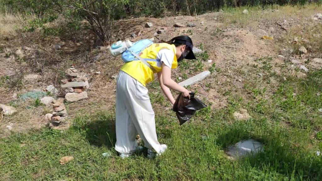 志愿者们到达徕佛山底,拿出了提前准备好的垃圾袋,开始仔细搜寻每一处角落的垃圾。面对散落在石缝、草丛间的各类垃圾,大家弯腰、捡拾、装袋,一系列动作连贯而熟练。在这个过程中,大家深刻体会到了保护自然环境的重要性,也更加坚定了守护青山绿水的决心。