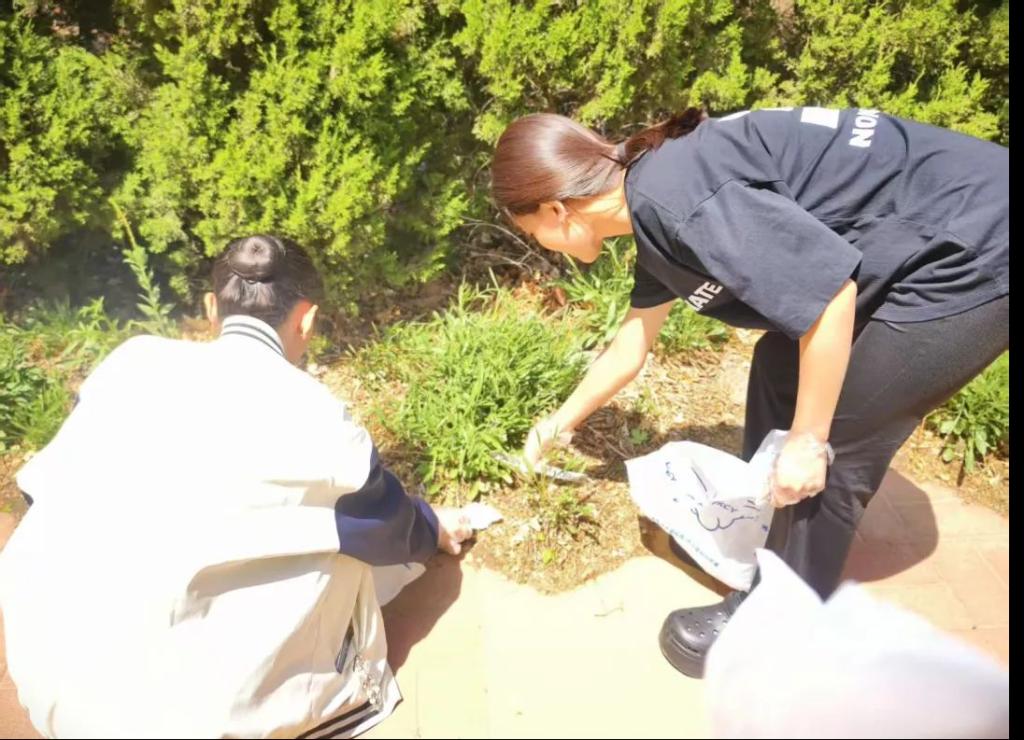 活动现场设置了多个特色板块,吸引众多师生参与。“垃圾侦探行动”环节,参与者领取“校园微生态地图”,分组对初等楼、实验楼、操场等区域进行垃圾清理,特别设立“烟头追踪”任务,通过清理草丛中隐藏的烟头,让校园绿化更加纯净。“垃圾分类竞技场”“废物重生工坊”等环节,同学们也是发挥创意,展现了良好的环保素养。
