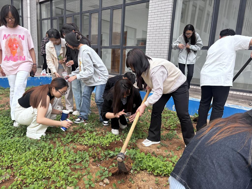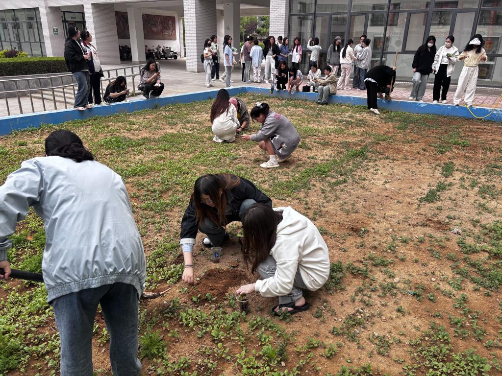 活动伊始,艺术楼下的油菜花地热闹非凡。师生们怀揣着好奇与热情,纷纷来到现场,开启这场与油菜花苗的奇妙邂逅。在工作人员的耐心指导下,大家有序地领取工具。老师们放下平日里的严肃,与学生们亲切交流,分享着种植的小窍门。学生们则像一群欢快的小鸟,叽叽喳喳地讨论着如何照顾好这些小生命。大家小心翼翼地捧起花苗,仿佛捧着一份珍贵的礼物,眼中满是温柔与责任。领到花苗后,师生们各自前往选定的种植地点。校园的角落、宿舍的阳台、教学楼的窗台,都成了油菜花苗的新家,同学们表示,会细心呵护这一株株小生命,见证油菜花从花苗到花朵的蜕变过程。