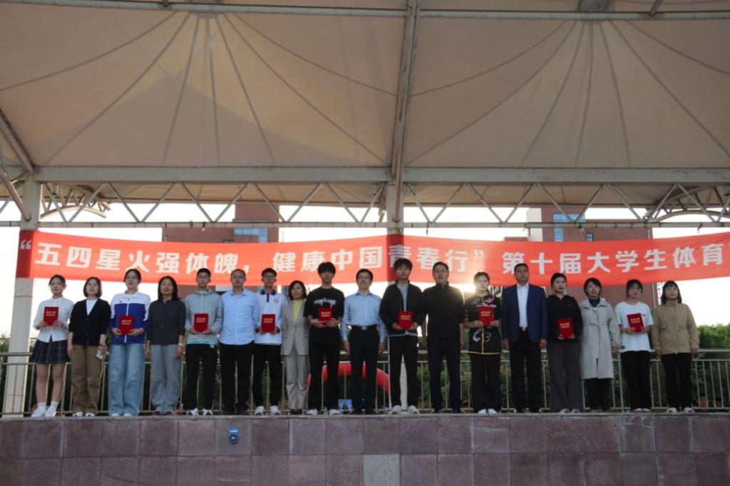 激昂的国歌奏响,五星红旗冉冉升起,拉开了开幕式的序幕。在热烈的掌声中,颁奖仪式正式开始,校园跑月冠军、燃脂大赛、定向越野、趣味运动会、艺动身心、春日健康行及电竞比赛等赛事的获奖学生代表依次上台。刘海峰校长、学工处处长王岩王、体育学院党总支书记王建英、体育学院院长张春波以及各学院党总支副书记为他们颁发荣誉证书,表彰他们在赛事中的卓越表现,激励更多同学投身体育活动。