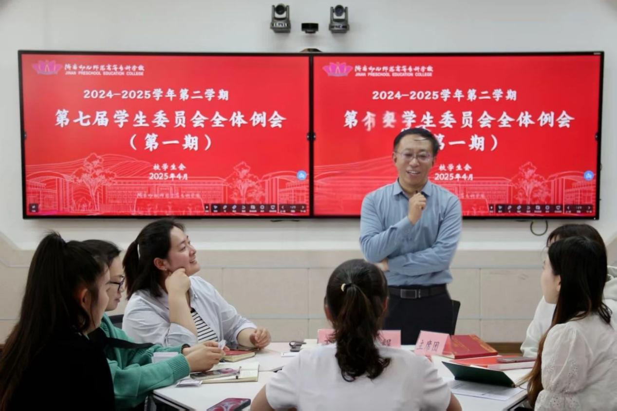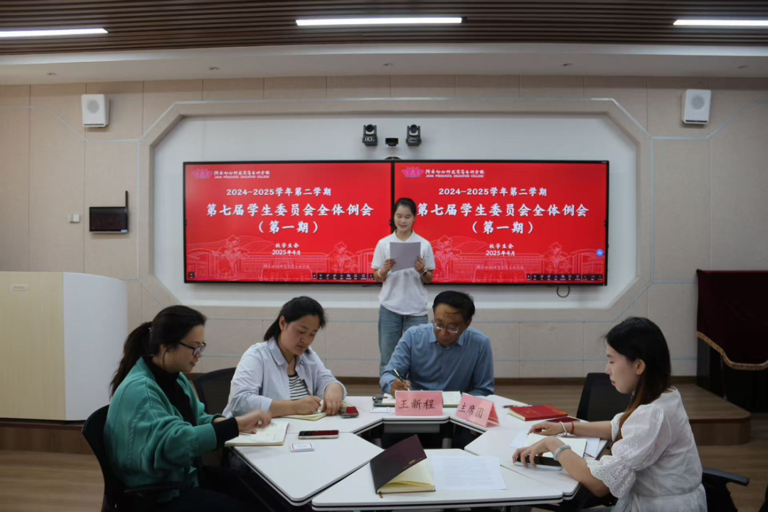 为深化校园文化建设,明晰学生组织发展方向,优化新一届学生会部门架构,强化团队协作效能,4月24日中午,校学生会于学前楼智慧教室301举办了第七届学生委员会第一次全体例会,校党委委员、副校长王新程莅临指导,团委相关老师参加会议,会议由校学生会主席团成员主持。
