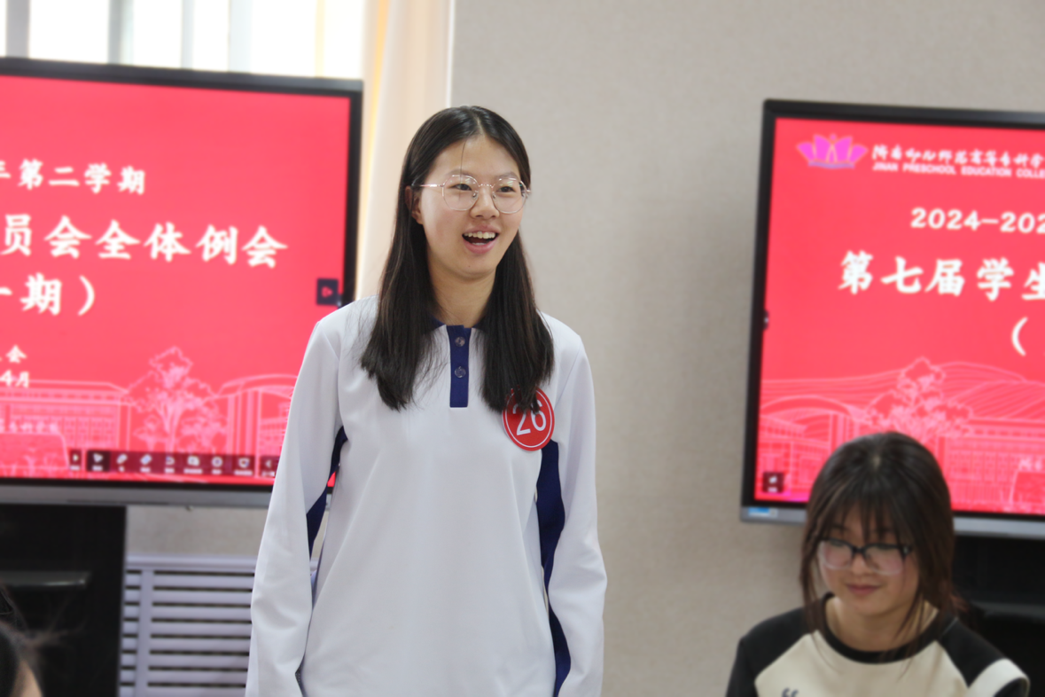 随后,校学生会主席团代表李晓雨进行工作汇报。她总结了近期学代会筹备、体育节组织等重点工作的进展与成果,分享团队在协作过程中的经验与收获。同时,也客观分析了当前工作中存在的问题与不足,体现出校学生会务实的工作态度,为全体成员树立榜样,激励大家以更严谨的态度投入学生会工作。